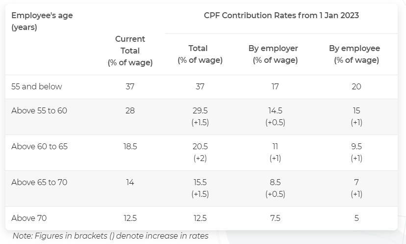 싱가포르 CPF 납부 비율 인상 (2023년 1월 1일부터) 본문