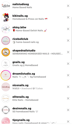 <SNS에 homebase nail singapore로 검색했을 때 나오는 계정>