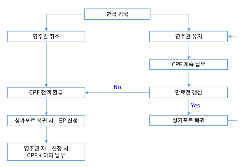 - 영주권 유지 및 갱신을 희망하는 경우 CPF를 계속 납부해야합니다.